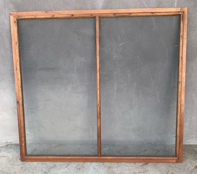 Detalles del productoMosquitera rectangular para ventana con Marco fijo de madera y separación en medio por otra madera. La primera foto es la parte exterior y la segunda foto corresponde a la parte interior. Medidas del producto