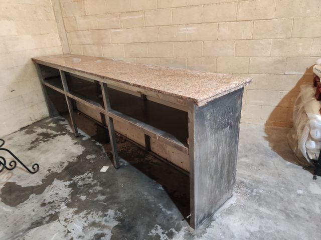Detalles del productoMostrador de granito para negocio, ideal para frutería o tienda. Tiene una superficie de granito rosa y una estructura de metal. Se encuentra en buen estado, aunque presenta algunas señales de uso.