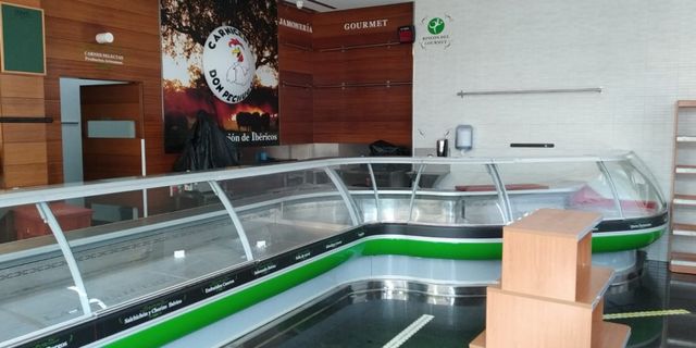 Detalles del productoMostrador refrigerado con acabado curvo y detalles en verde.