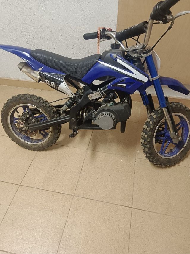 Moto de cross gasolina para niños en color azul. Ideal para iniciarse en el mundo del motocross. - Diseño deportivo. - Ruedas todoterreno.