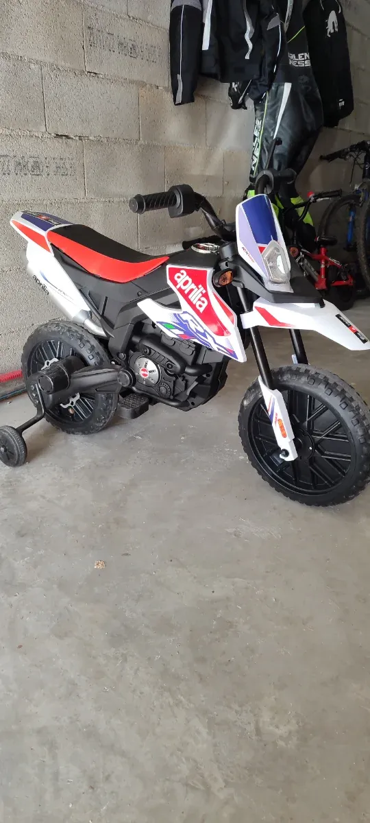 Moto eléctrica infantil con diseño deportivo de Aprilia. Ideal para los más pequeños.