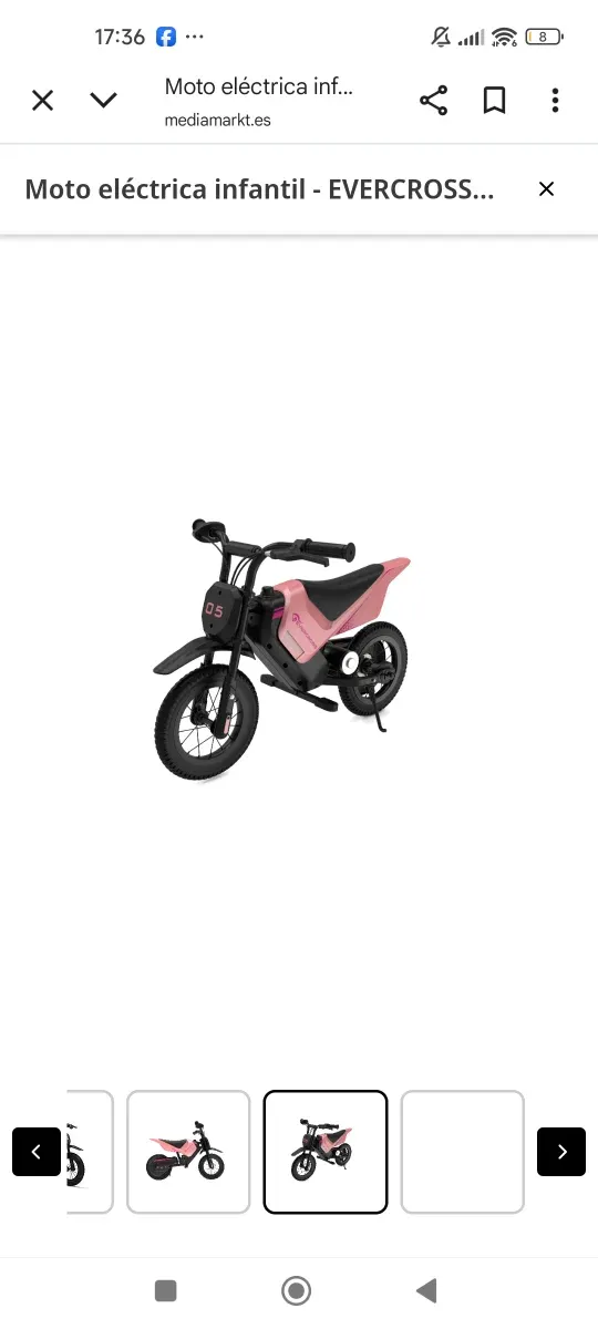 Moto eléctrica infantil de color rosa y negro. - Diseño tipo cross. - Ruedas negras.