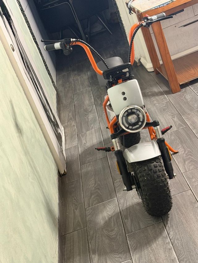 Moto eléctrica con muy poco uso, comprada en Reyes. - Color naranja y blanco. - Ruedas anchas y diseño robusto.