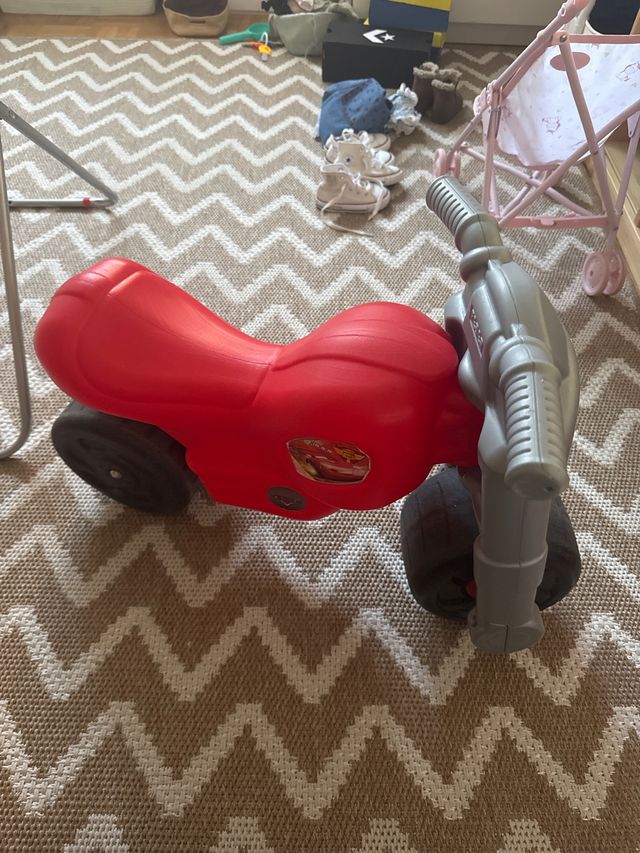 Moto de juguete para niñ@s, en buen estado. - De plástico rojo y gris. - Diseño de Cars.