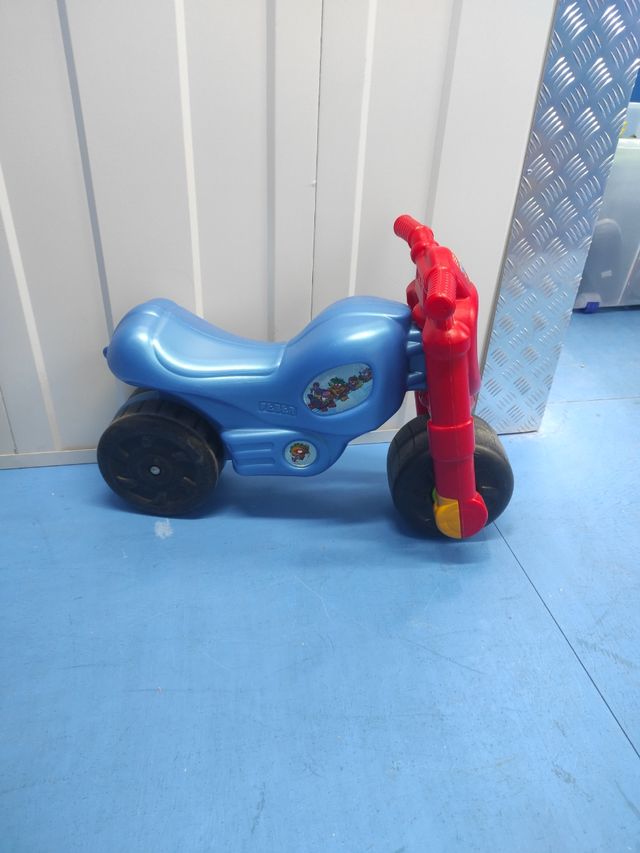 Moto de juguete para niños, en buen estado. Ideal para que los más pequeños se diviertan. - De plástico resistente. - Color azul y rojo. - Diseño de motocicleta.