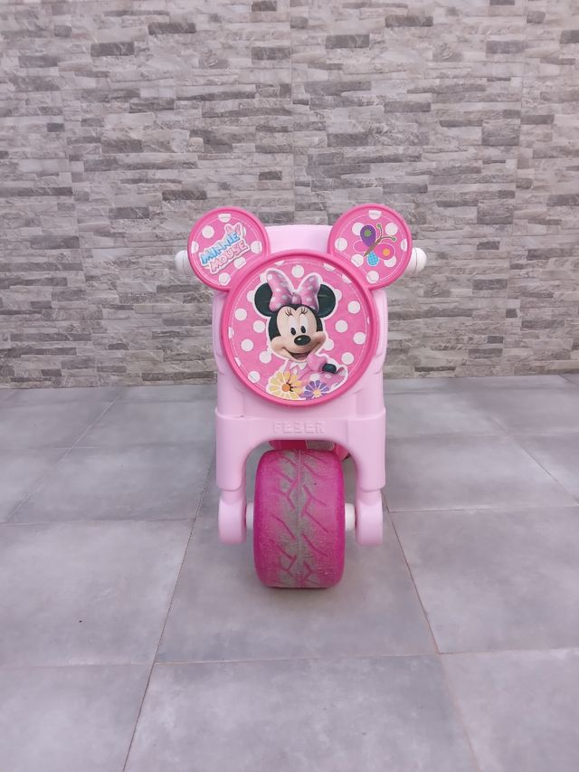 Detalles del productovendo moto de niña de MINNIE MOUSE,de 2 a 4 años.está usada pero está bastante bien,le falta el claxon,que lo tengo pero hay que soldar un cable pequeño.