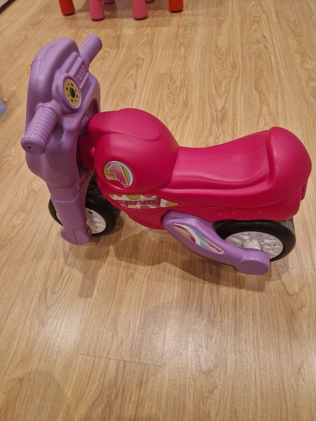 Moto para niños esta en perfecto estado, solo la pegatina se ha despegado la mitad, no impide su uso, se pude poner cualquier otra si se desea
