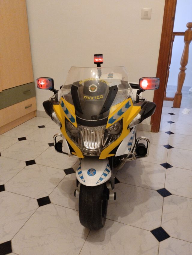 Moto eléctrica infantil con diseño de la Guardia Civil. Está en muy buen estado. - Diseño realista de motocicleta de policía. - Luces y sonidos. - Ideal para niños.