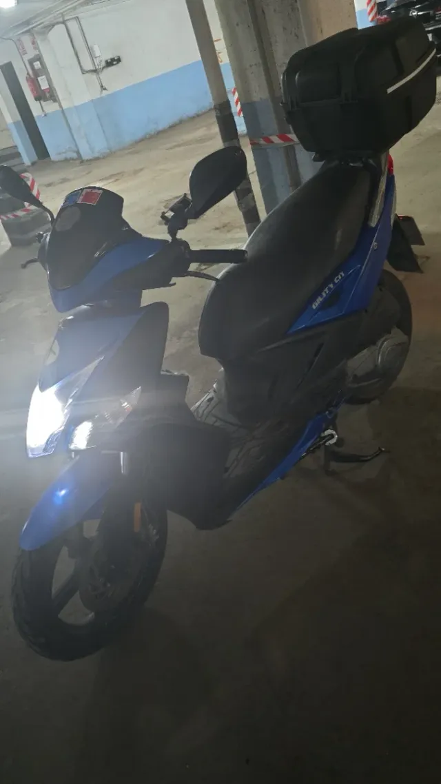 Moto tipo scooter en tonos azul y negro - Diseño deportivo