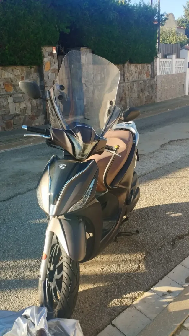 Moto scooter en perfecto estado, lista para circular. - Color marrón metalizado. - Pantalla delantera alta. - Asiento cómodo en tono marrón.