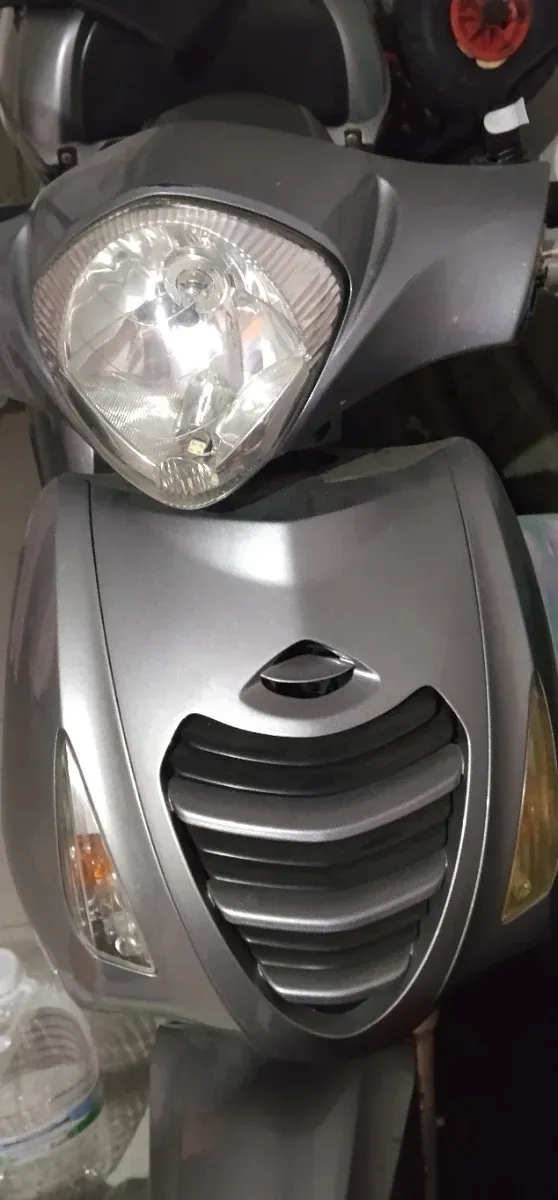 Moto tipo scooter en color plata. Un vehículo práctico y ágil para la ciudad. - Diseño moderno y elegante. - Ideal para desplazamientos urbanos.