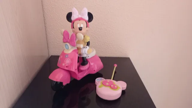Divertida moto teledirigida de Minnie Mouse. - Color rosa. - Incluye mando a distancia. -Funciona con pilas.