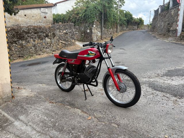 Detalles del productoMoto clásica Torrot de 49cc, ideal para coleccionistas o para disfrutar de paseos.