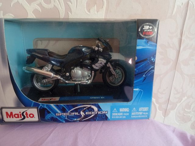 Detalles del productoMiniatura de la moto Triumph Sprint RS a escala 1:18 de la marca Maisto. Es una edición especial y se encuentra en su caja original.