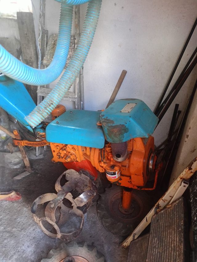 Motocultor con motor diésel, ideal para trabajos en huertos y jardines. - Color principal naranja y azul. - Incluye accesorio rotavator. - Rueda de goma. Sin papeles