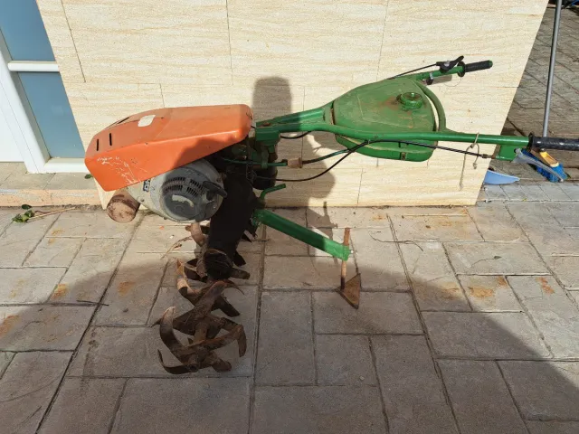 Se vende motocultor con motor de gasolina. Ideal para trabajos en huertos y jardines. - Color naranja y verde. - Cuchillas para labrar la tierra.