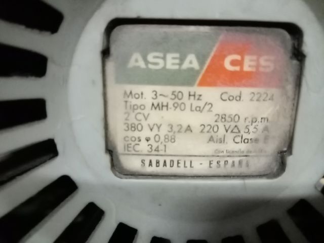 Detalles del productoMotor eléctrico trifásico de la marca ASEA CES.