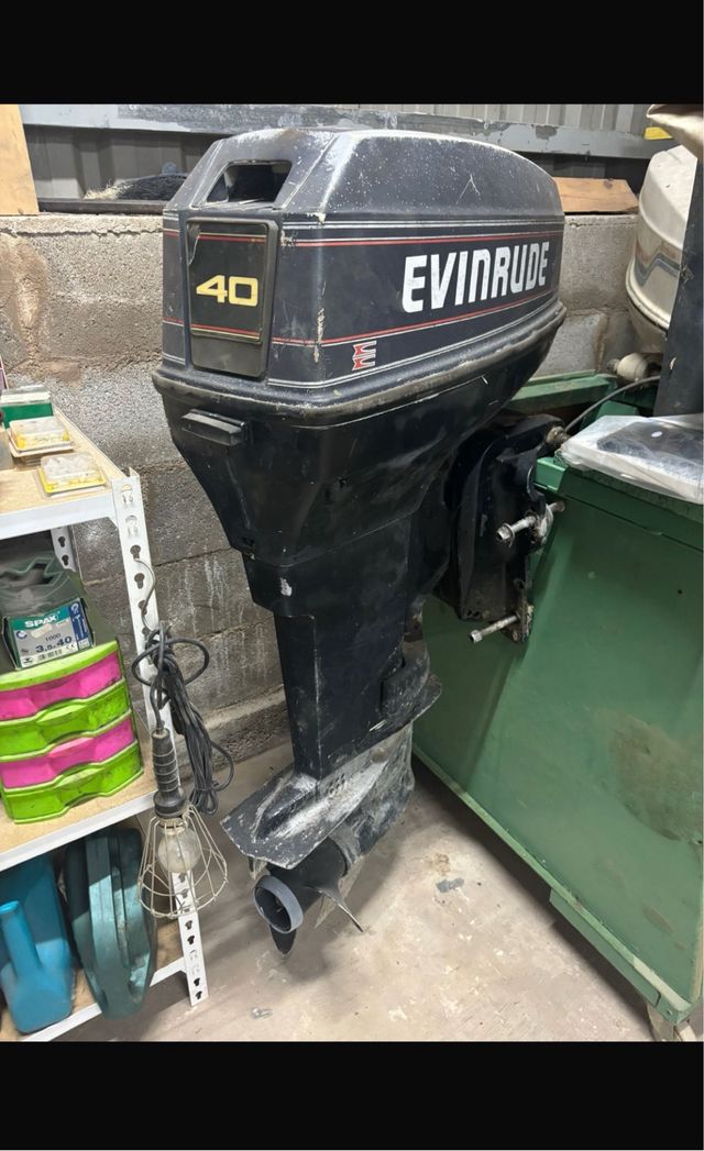Detalles del productoMotor fueraborda Evinrude de 40 caballos de potencia, dos tiempos.