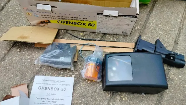 Detalles del productoKit de motorización para puertas de garaje Avidsen, modelo Openbox 50. Incluye instrucciones de montaje, dos mandos a distancia, luz de aviso. Se retiró funcionando porque tiene roto el gatillo para apertura manual por cable. Embalaje original.