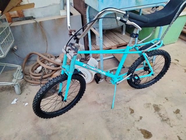 Detalles del productoBicicleta Todashura antigua, ideal para restaurar. Es de color turquesa y tiene un diseño clásico.
