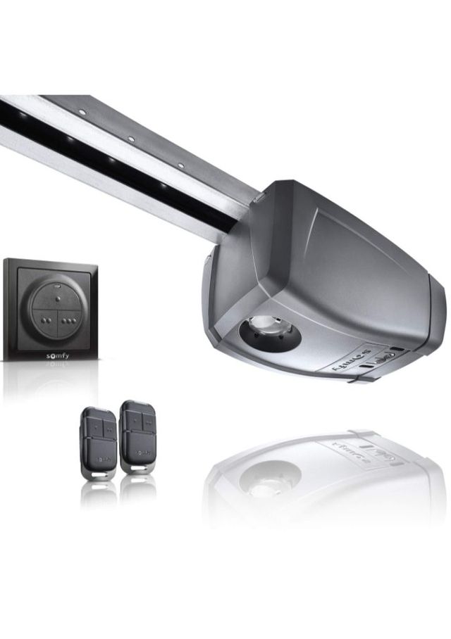 Sistema de motorización para puerta de garaje Somfy. - Incluye motor principal. - Incluye mando a distancia. - Incluye pulsador de pared.