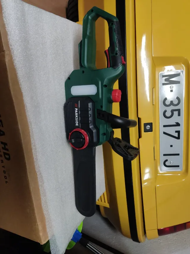 Detalles del productoMotosierra eléctrica Parkside, ideal para trabajos de jardinería y poda.