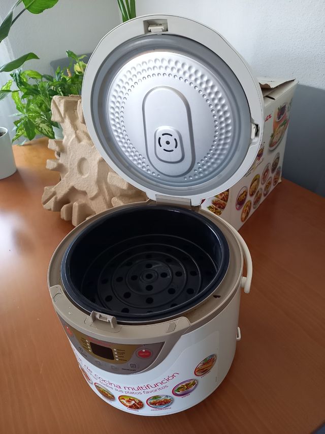 - Incluye recipiente y accesorio para cocinar al vapor.