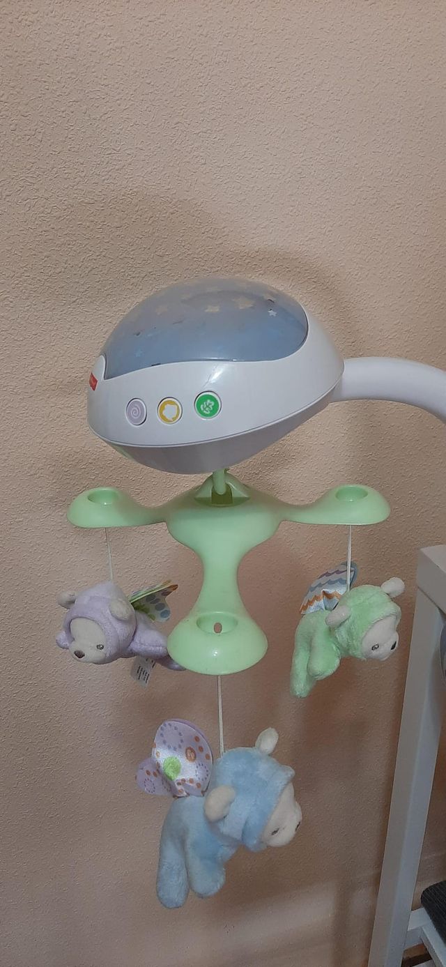 Detalles del productoMóvil de cuna Fisher-Price con proyector de estrellas y peluches.