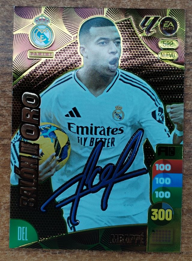 Cromo Mbappe balón de oro firmada adrenalyn 2025