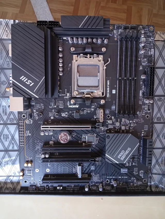 Placa base MSI PRO B650-P WIFI. - Socket AM5. - Soporte para procesadores AMD Ryzen. - Conectividad Wi-Fi integrada.