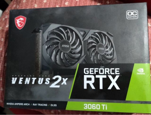 Detalles del productoTarjeta gráfica MSI GeForce RTX 3060 Ti Ventus 2X OC Edition con 8GB de VRAM GDDR6.