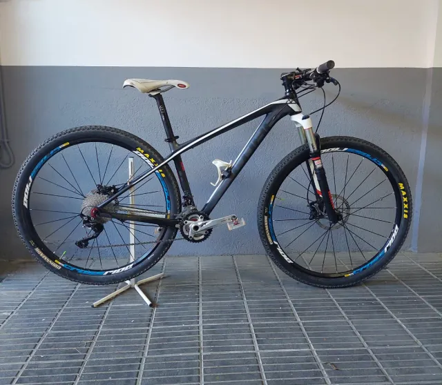 Manillar carbono, tija carbono, 2 platos y llantas MAVIC Cross Ride de radios planos con neumáticos Maxxis Crossmark como extras.
