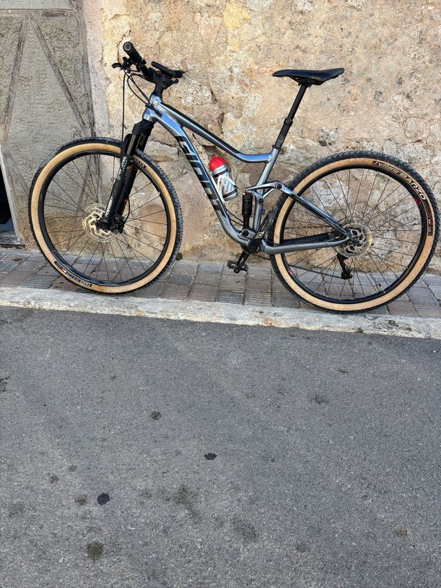 Bicicleta de montaña Giant. - Cuadro de aluminio. - Suspensión delantera y trasera. - Frenos de disco. - Ruedas de 29 pulgadas. tija telescópica mono plato