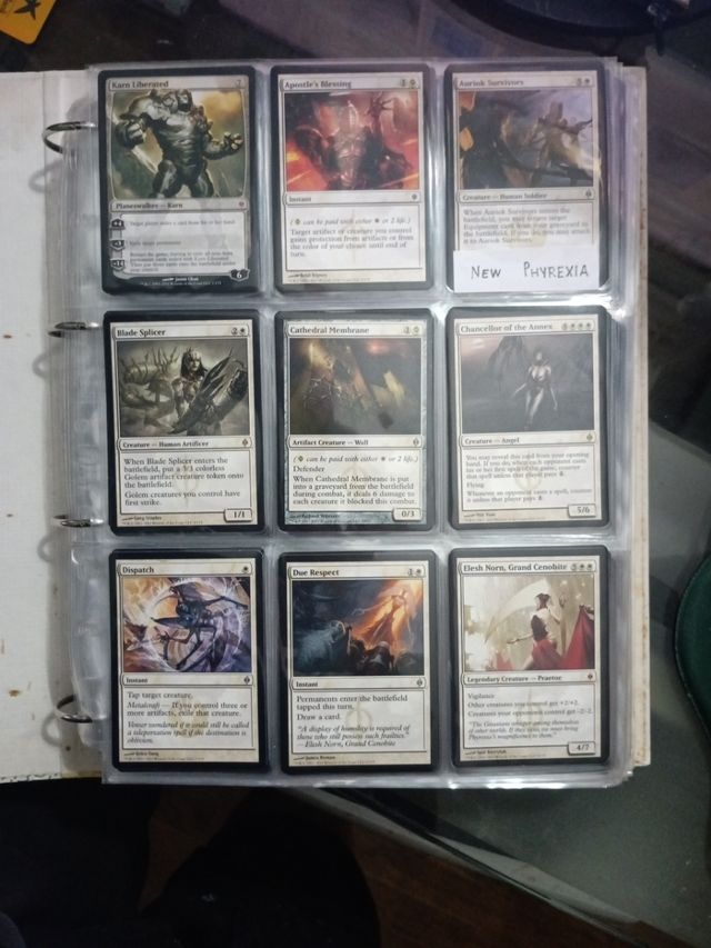 Set completo de MTG NEW PHYREXIA. Se incluye los tokens. El idioma es el inglés y el estado de las cartas es como nuevas. Están en hojas de 9 bolsillos.