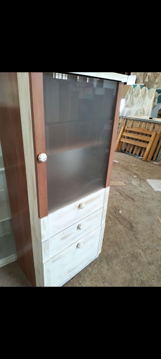 Detalles del productoVendo mueble auxiliar de salon con vitrina y cajones en buen estado, mide 160 de alto, 60 de ancho y 55 de fondo. Medidas del producto