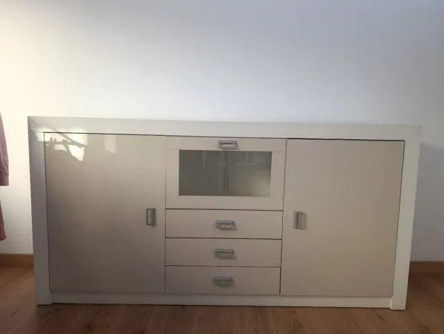 Mueble blanco/beige salón/entrada con cristal