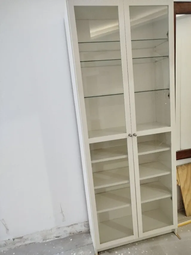 Mueble blanco con puertas de cristal