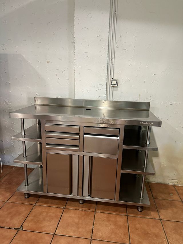 Detalles del productoMueble de acero inoxidable con diseño industrial, ideal para hostelería o negocios.
