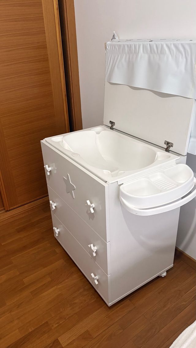 Vendo cajonera para bebe con bañera incorporada. Tiene 3 años. Esta en buen estado.Solo una esquina del cambiador esta roto. Pero se puede poner uno nuevo.