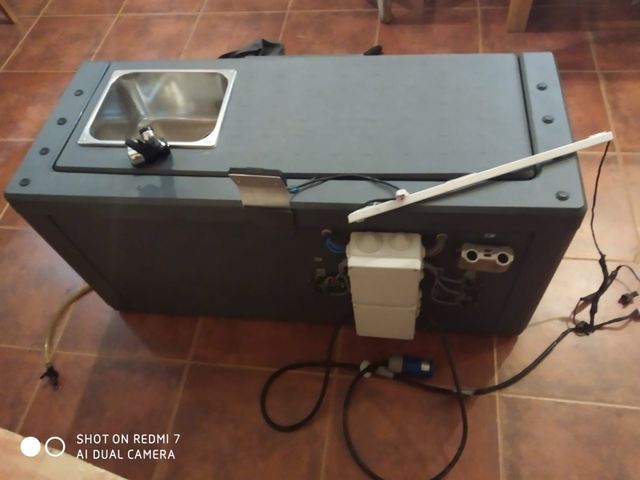 Detalles del productoMueble fregadero camper, agua caliente, conexión trifásica y arcón de almacenaje.