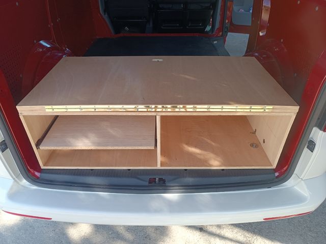 Detalles del productoMueble Camper con tres Colchones. Estaba puesto en una Volkswagen Transporter T5, pero vale para furgonetas de tamaños similares. Sujeto a los anclajes de la furgoneta, no necesita homologación.