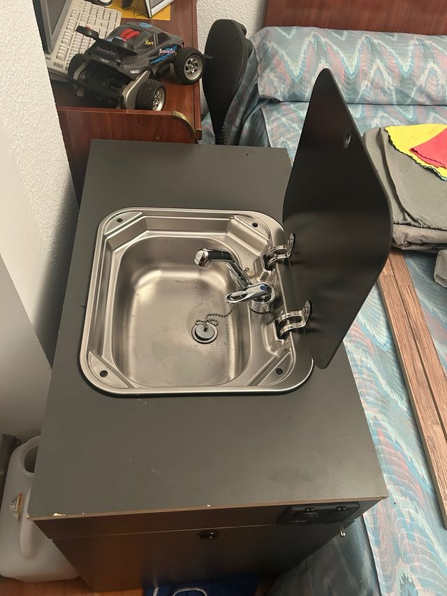 Mueble compacto diseñado para camper. - Incluye fregadero de acero inoxidable. - Grifo cromado. - Tapa abatible para el fregadero.