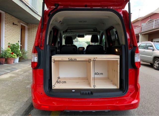 Detalles del productoMueble de madera hecho a medida para furgoneta pequeña, ideal para camperizar.