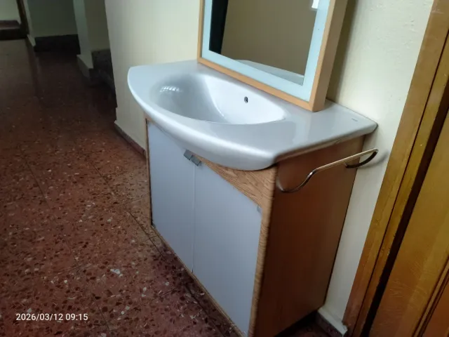 Mueble de baño con lavabo y espejo