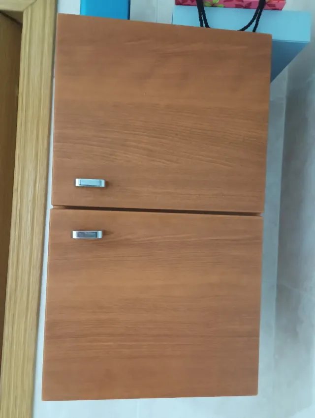 Mueble de baño con un diseño moderno y funcional. - Dos puertas con tiradores metálicos. - Acabado en madera clara.Medidas.Ancho35 alto60y fondo 25