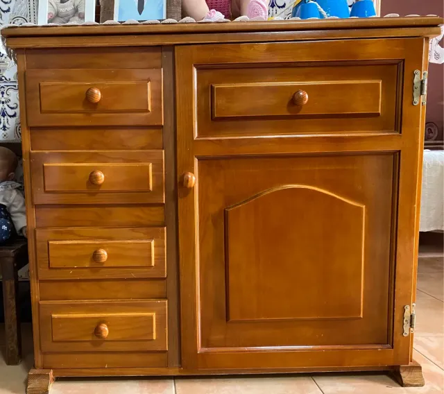 Máquina de coser con motor y pedal de hierro, con mueble marca refrey