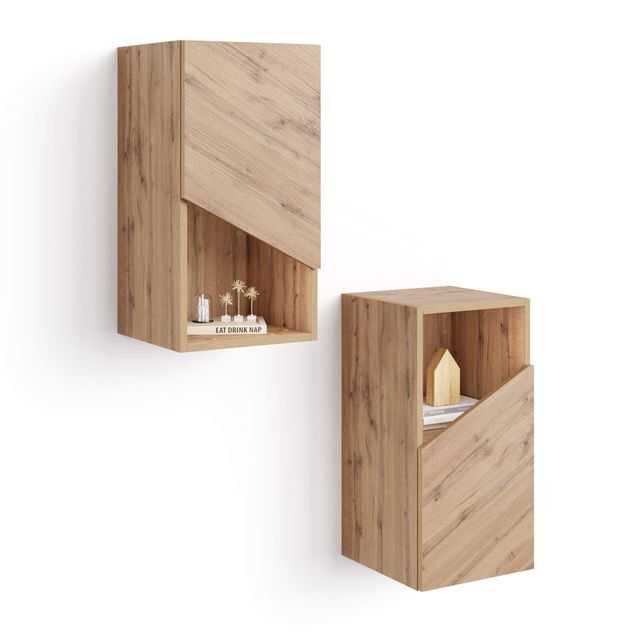 Conjunto de dos muebles de pared con un diseño moderno y acabado en madera rústica.