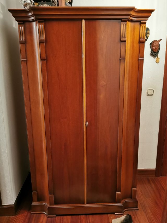 Detalles del productoMueble escritorio de madera maciza con puertas que permite cerrarlo. Dedicado para poder almacenar dentro ordenador/portátil, libros, archivadores... Y al cerrar la puerta queda apariencia de un armario cerrado.