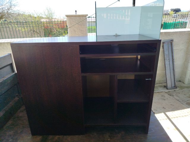 Mueble mostrador con espacio para ordenador y TPV. Posibilidad de tarima móvil a juego eni perfil. En buen estado.