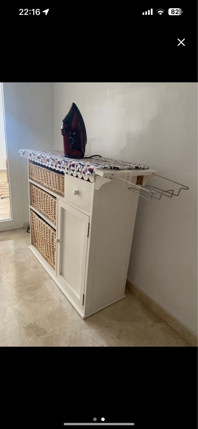 Detalles del productoPreciosa mesa de planchar con mueble auxiliar integrado. Ideal para guardar la plancha y la ropa.